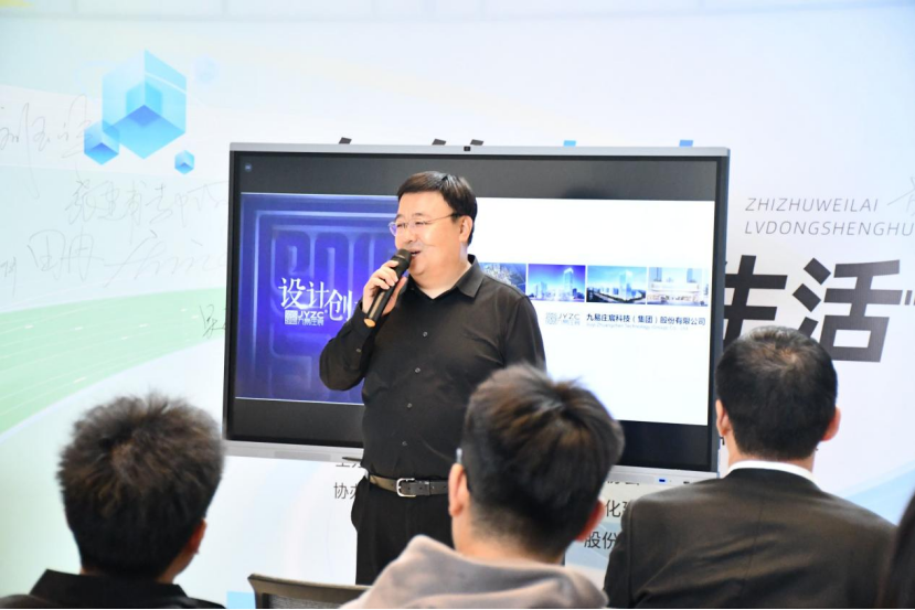 九易庄宸的领导和专家们热情接待了数院师生一行,集团执行总裁刘晔、总裁助理郝大伟为同学们详细介绍了集团的发展历程、业务范围和近年来集团在建筑、艺术、数字经济等多个领域的创新实践成果。