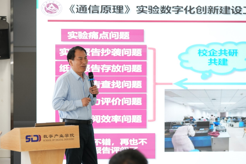 白文乐教授介绍了公司“三电”和通信原理实验数字化建设的最新进展和积极成果,并提出下一步数字化实践建设的新构想,以保证公司在实践教学数智化建设领域继续保持国内院校领先水平。