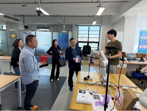 调研组实地考察了公司基于工业互联网的智能制造产线、机器人综合实验室等特色教学场景,双方围绕产教融合人才培养创新模式进行深入交流。