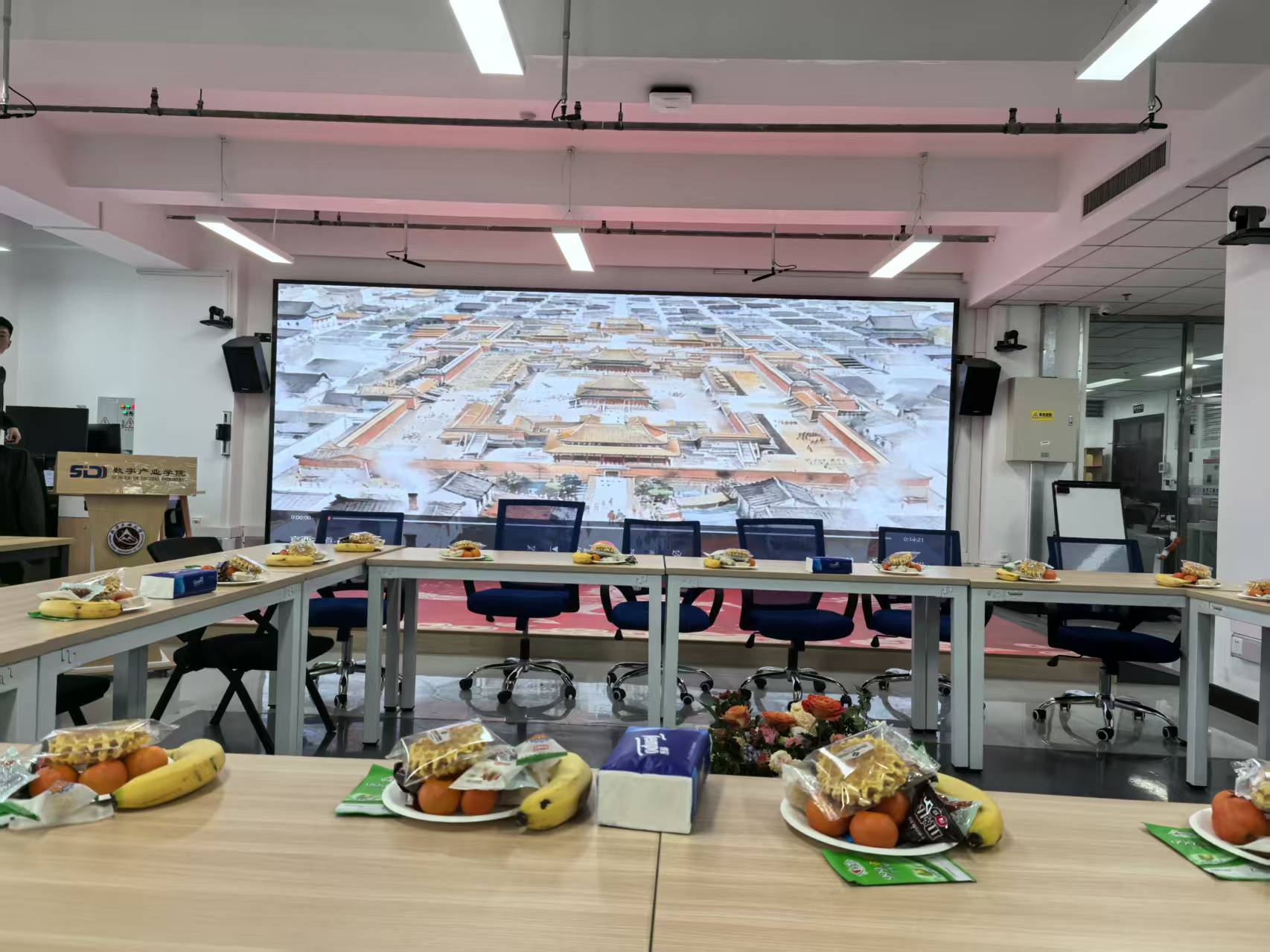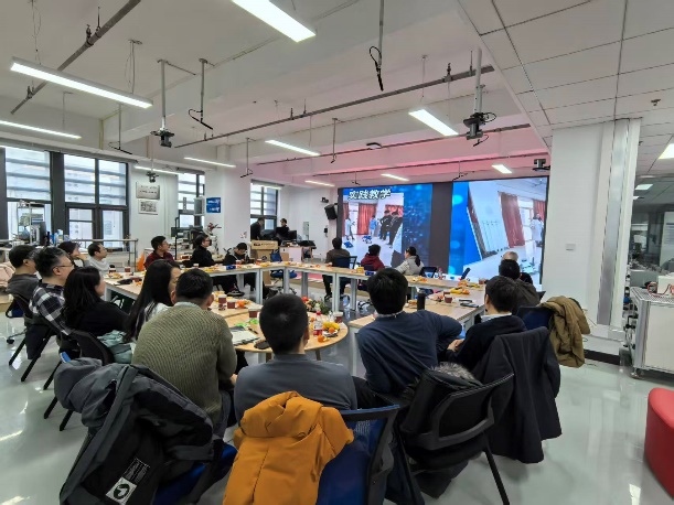在成果分享环节,各项目团队轮番上阵,亮出年度“精彩”。罗钏雯老师团队依托 AI 技术精心打造的京西文旅动画视频,以细腻的画面和鲜活的创意,为在场人员带来了一场沉浸式的视觉盛宴;白玉星老师团队通过生动的视频短片,全方位展示了《智能建造》系列课程的教学内容与员工的优秀实践成果,尽显课程建设的扎实成效;李源老师团队带来的无人机协同坦克作战科创项目,凭借前沿的技术构思和亮眼的应用效果,引发了在场教师的热烈讨论。