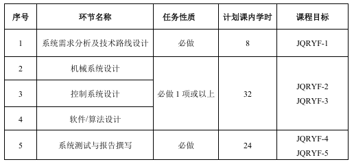 2) 机械结构设计、制造与调试:≥32学时