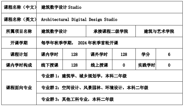 先修课程:建筑初步或对应的其他专业一年级设计类课程。
